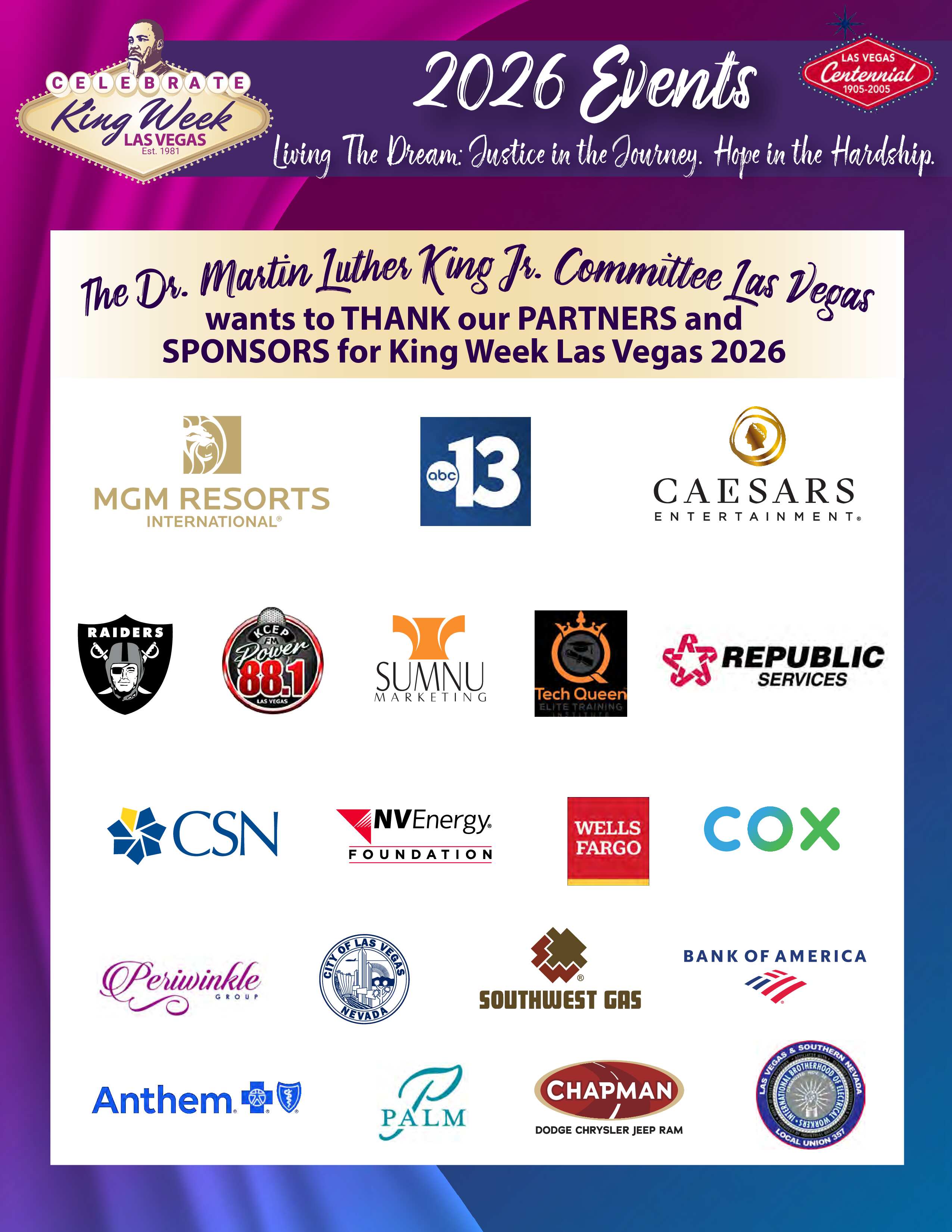 We will be *LIVE* in 2026! NO MATTER WHAT THE WEATHER CONDITIONS ARE!!! The parade will feature creative floats, motorcycles, with performance groups and local political figures and celebrities joining in the festivities. Visit this page again soon for complete schedule of events. The 44th Annual Parade will be hosted on January 19, 2026 in Downtown Las Vegas, LINE UP starts on 4th & Hoover. See parade application for more details.